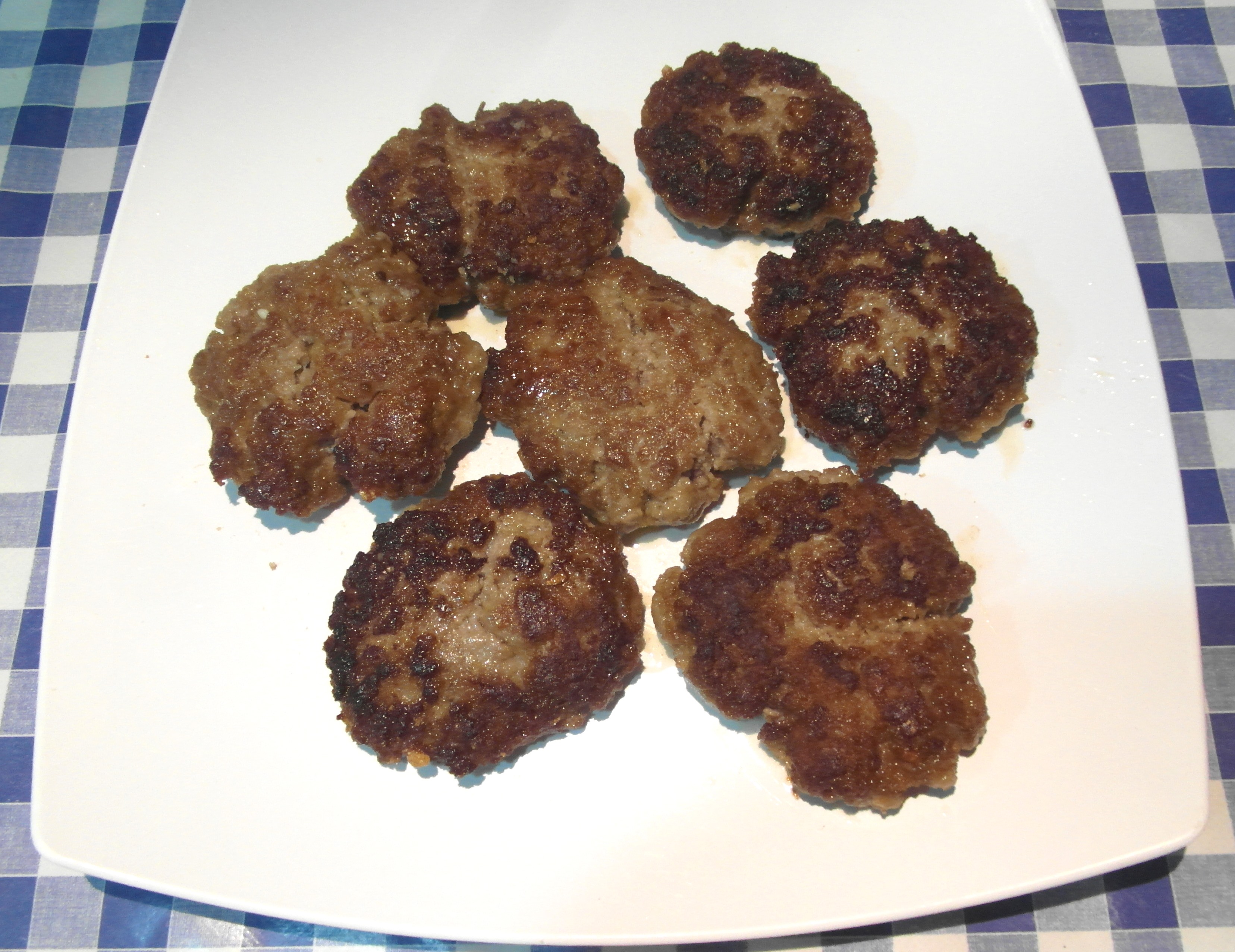 Formamos bolitas del tamaño de una nuez y las aplastamos, para formar las hamburguesas.