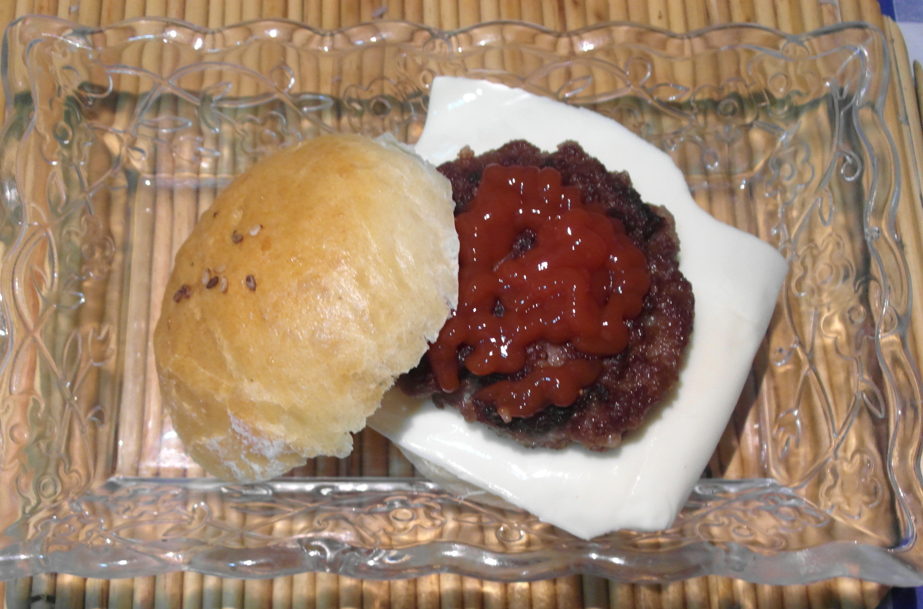 Sobre la parte inferior de cada pan colocamos una loncha de queso que se funda, encima la hamburguesa y sobre ella ketchup, mostaza, cebolla…a gusto de cada uno. Y listas, pequeñitas, sabrosas y riquísimas.