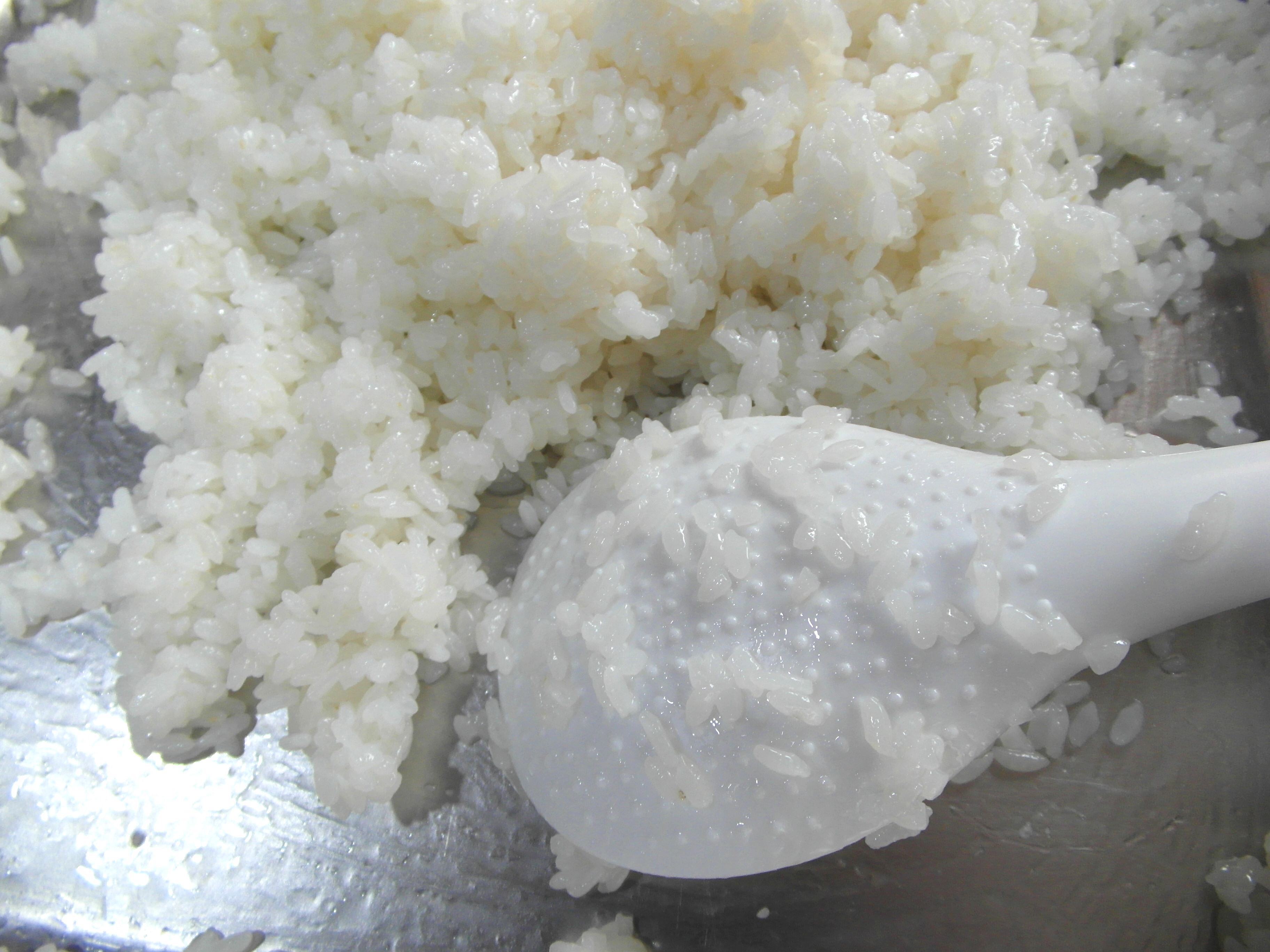 Una vez cocido se une bien con una mezcla de agua, azúcar, sal y vinagre, y una vez bien mezclado vamos cogiendo porciones para elaborar el sushi.