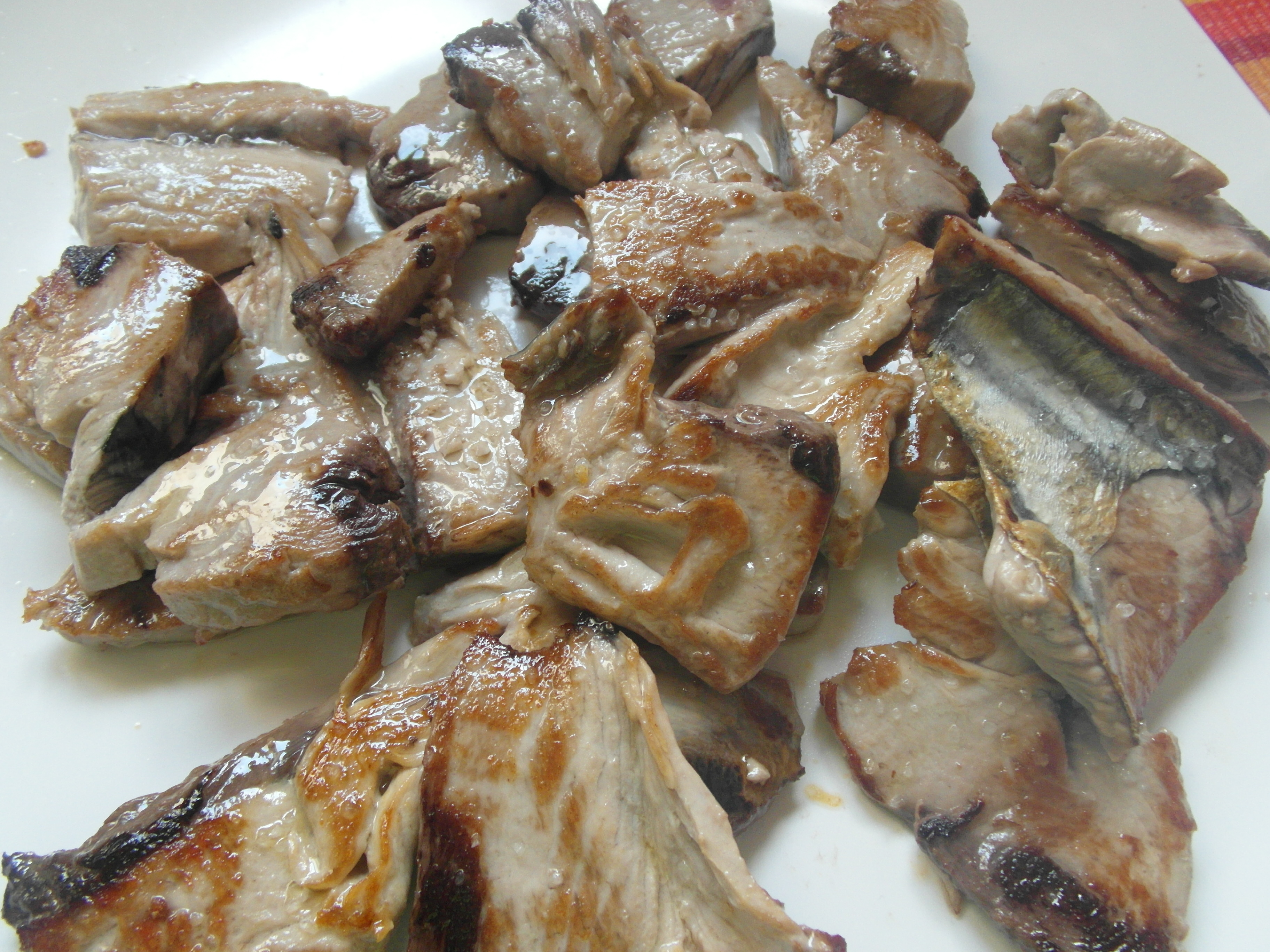 Hacemos filetitos y los vamos pasando por una plancha con un poquito de aceite de oliva.