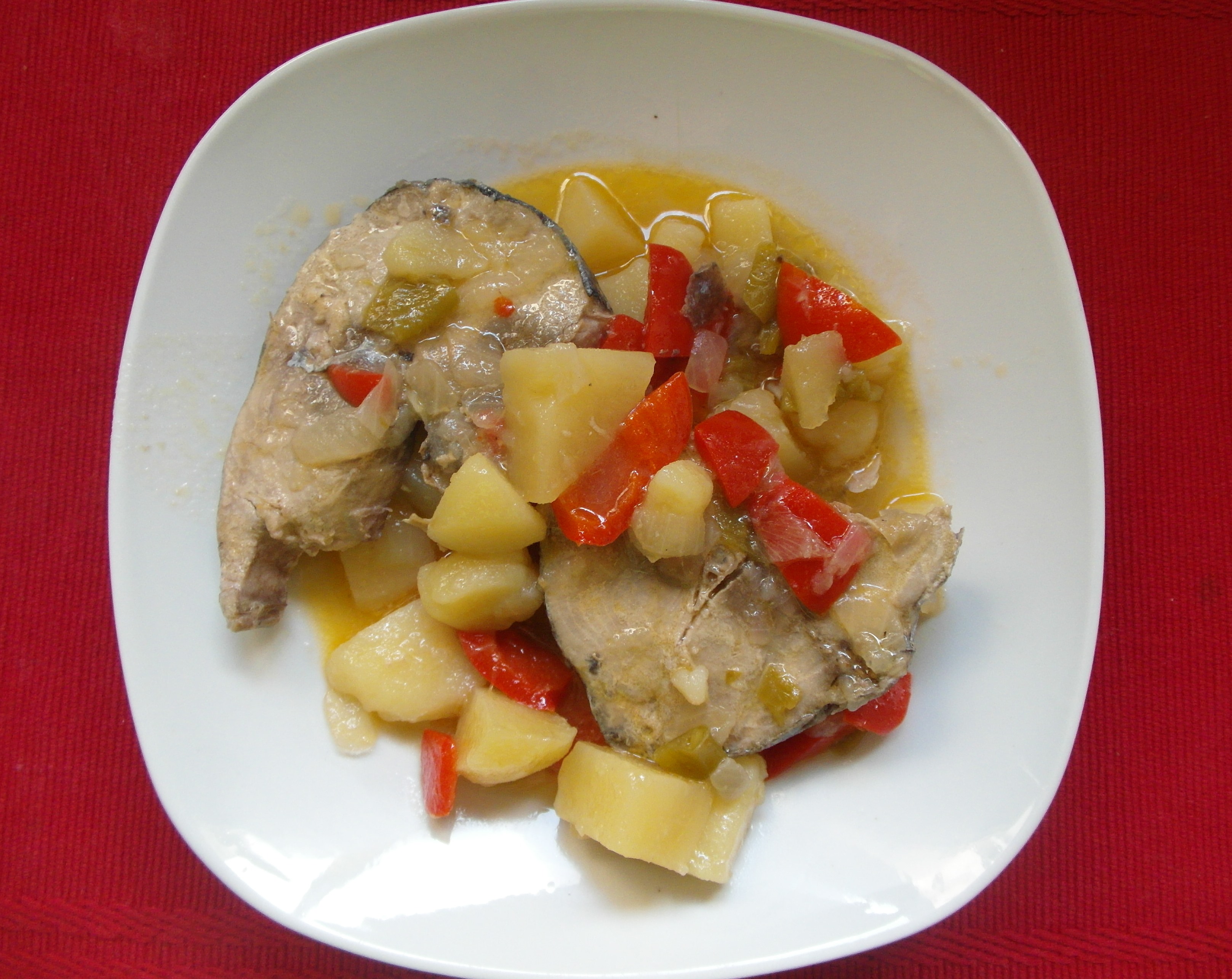 Hace poco se me ofreció la oportunidad de conseguir bonito pescado en Cádiz por un gaditano y con anzuelo, nada de bonito del Norte, bonito del Sur. La pieza era bastante grande y hermosa, por lo que me dio para cocinarla de dos maneras, en Marmitako y a la plancha. Ya había cocinado yo en otra ocasión un «marmitako» de atún.