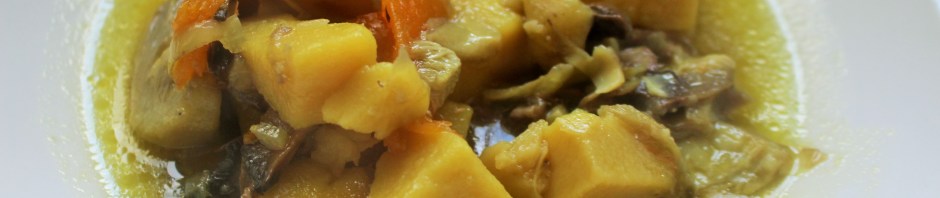 Las verduras para hacerlo son aleatorias, en mi caso he usado calabaza, alcauciles, champiñones, además de patatas. Es muy sencillo y el resultado es espectacular.