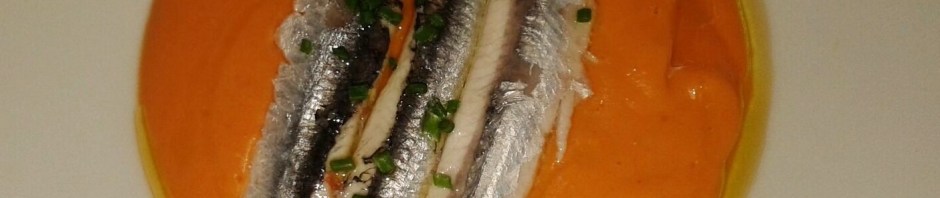 Salmorejo con boquerones en vinagre, un toque nuevo, muy rico