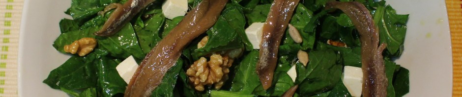Hoy vamos a tomarlas en ensalada. En este blog pidéis encontrar varias recetas elaboradas con espinacas, guisadas y en ensalada. La de hoy lleva anchoas y queso.