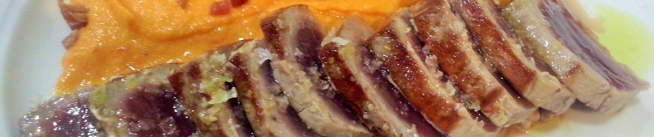 O solomillo de atún a la plancha sobre una cama de salmorejo…
