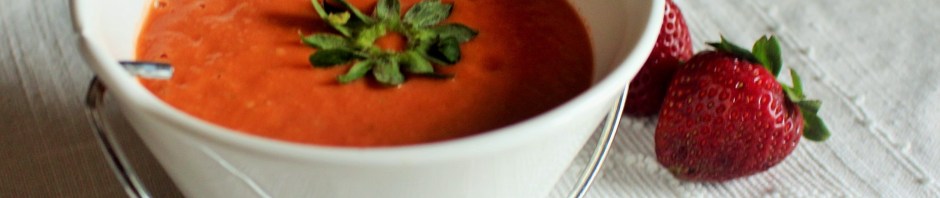 Ya sí que ha llegado el calor, el verano…y qué mejor plato para esta temporada que un buen gazpacho. Ya no se hace el gazpacho solo con tomate…, desde hace unos años han ido incorporándose nuevos ingredientes a este plato tan nuestro, como la sandía, o las cerezas o fresas. Fresas he elegido para hacer esta versión del gazpacho, le da un sabor nuevo, distinto, pero sin olvidarnos del de los tomates, que no dejan de estar entre los ingredientes de este rico entrante. No he añadido pan, se trata de un gazpacho solo de verdura y fruta, más ligero.