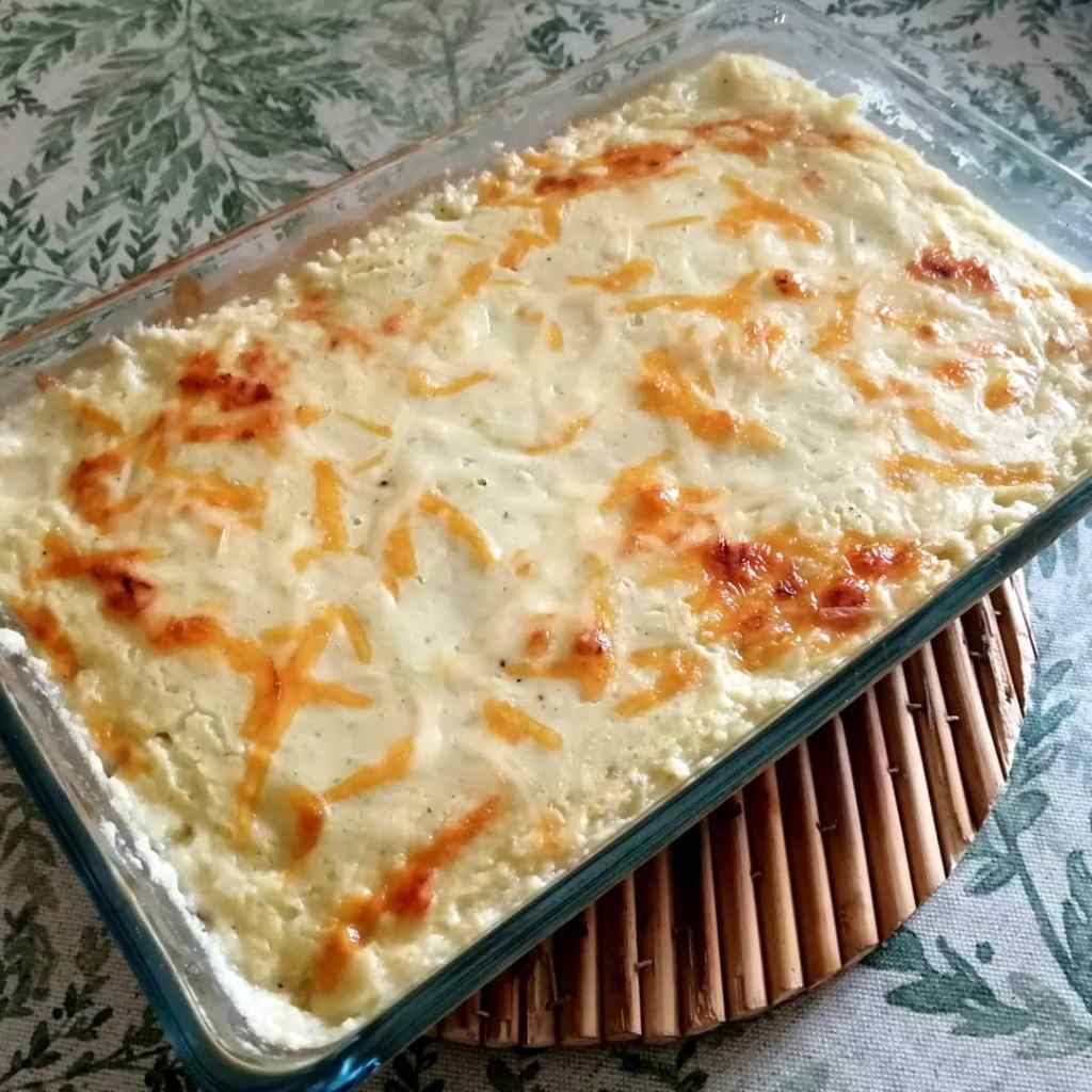 Echamos la mezcla en una bandeja de horno que sea honda y ponemos queso rallado por la superficie.