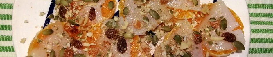 Ya está aquí el calor y apetecen ensaladas, frescas y nutritivas como esta de fruta, naranjas, y bacalao ahumado. Ya publiqué otra ensalada de naranja, con queso y anchoas, riquísima también. Las frutas ocupan el lugar de las verduras en estas ensaladas.