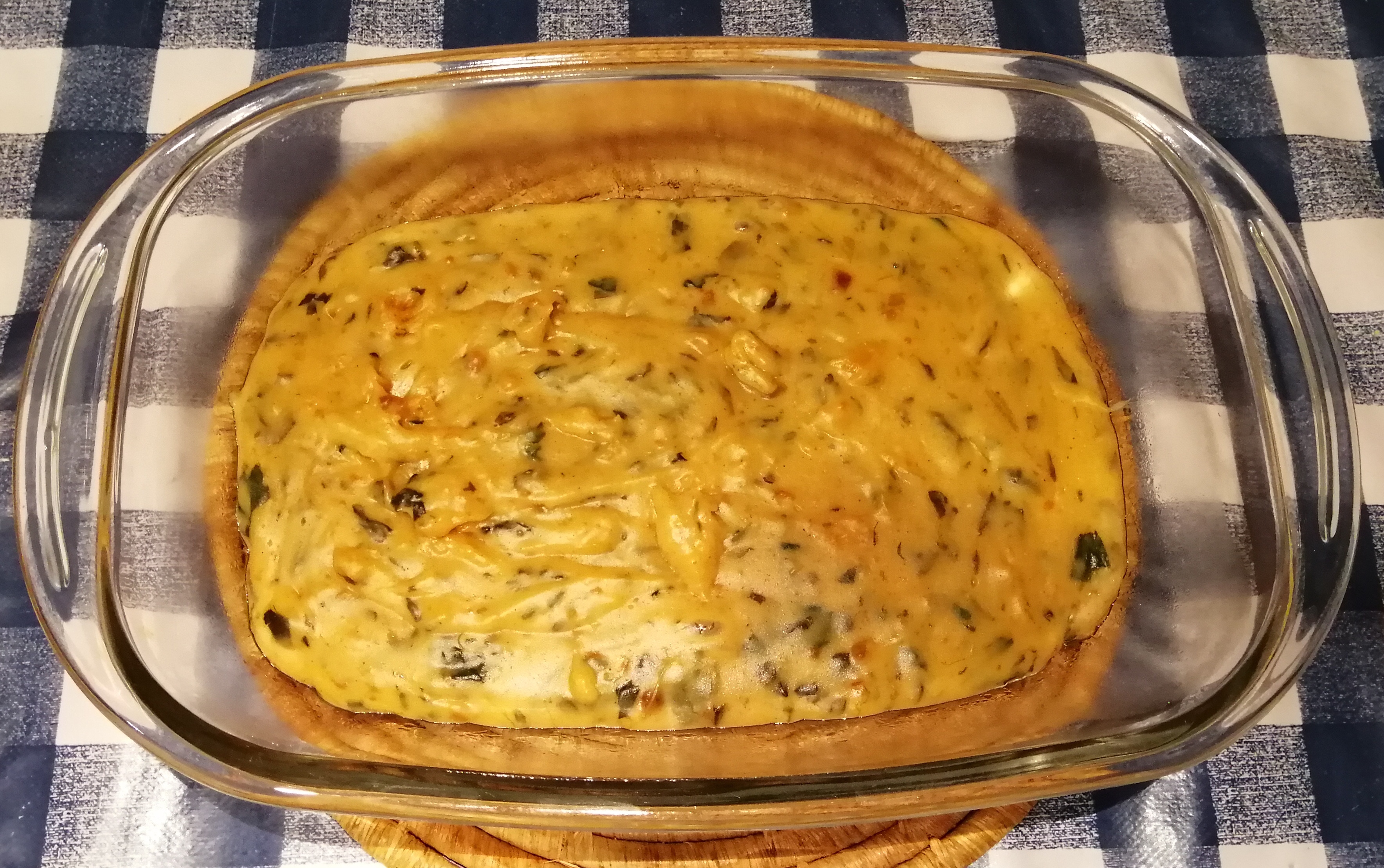 En primer lugar hacemos las espinacas. En una sartén sofreímos los dientes de ajo cortados en pequeño tamaño, y echamos una cucharadita de pimentón. Luego añadimos las hojas de espinacas cortadas y las dejamos hacer con vino o, en su ausencia, agua, hasta que estén tiernas.