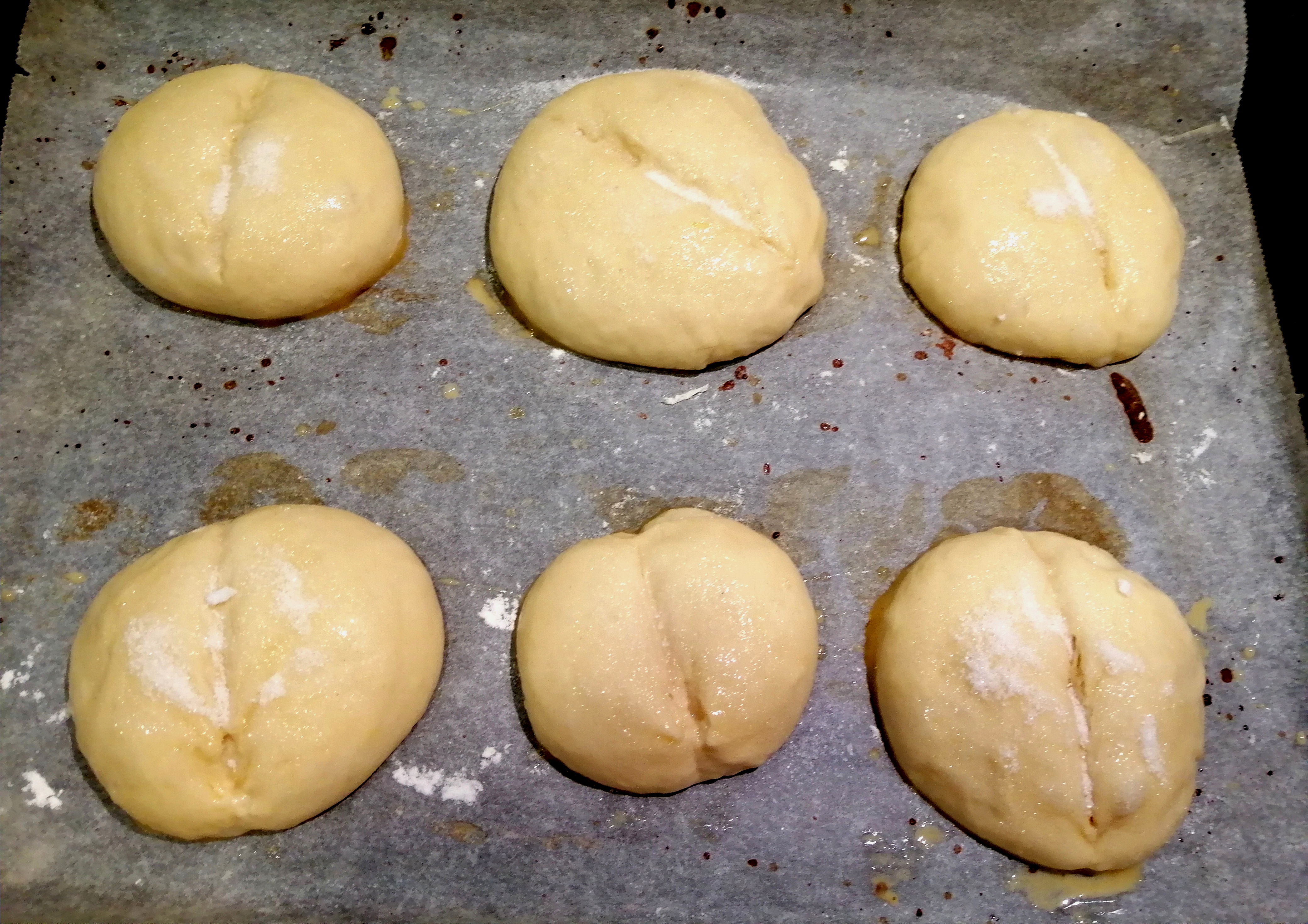 Ya tenemos unos ricos bollos de leche, que podemos hacerlos más o menos grandes, según nos guste, haciendo las porciones de mayor o menor tamaño. Riquísimos para tomar con mantequilla y mermelada, o con jamón, queso…