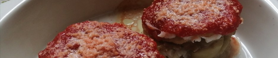 Esta es una receta «de aprovechamiento», para la que he utilizado unas rodajas de berenjenas empanadas y fritas que me habían sobrado y, por supuesto, no pensaba tirar.
