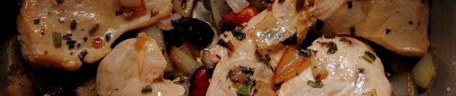 Me gustó mucho esta forma de cocinar el pollo y, como en su momento le comenté a Pilar, decidí hacerlo en casa. Yo la he hecho con pechugas de pollo, pues no tenía un pollo entero, y en vez de añadir una pastillita de caldo, que tampoco tenía, añadí caldo de puchero. Mis cantidades son más pequeñas que las de la receta original, pues la cantidad de pollo también era más pequeña, pero el resultado ha sido igual de bueno, porque estaba riquísimo.