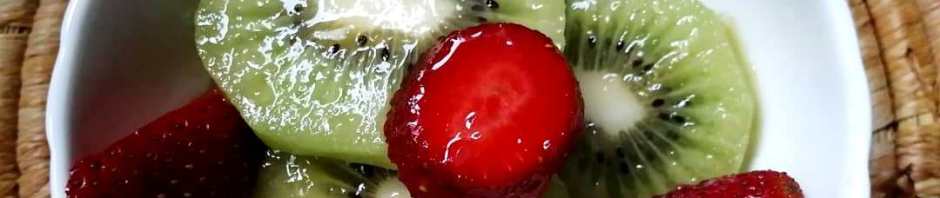 Las escurrimos y las colocamos en platos o cuencos junto con las rodajas de kiwi. Es bien sabido que el kiwi y las fresas aportan gran cantidad de vitamina C y tienen muchas otras ventajas para nuestra salud, por lo que además de tomar un postre muy rico, es muy sano.