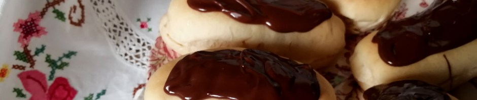 En vez de ponerles azúcar por encima les pusimos chocolate, que también es otra posibilidad. Tengo que decir que la crema pastelera la hice siguiendo la receta de Juan Ramón González Higuero, que la tiene en su blog De la vista al paladar, aunque reduje las cantidades a la mitad para adaptarlas al número de bollitos que hicimos.