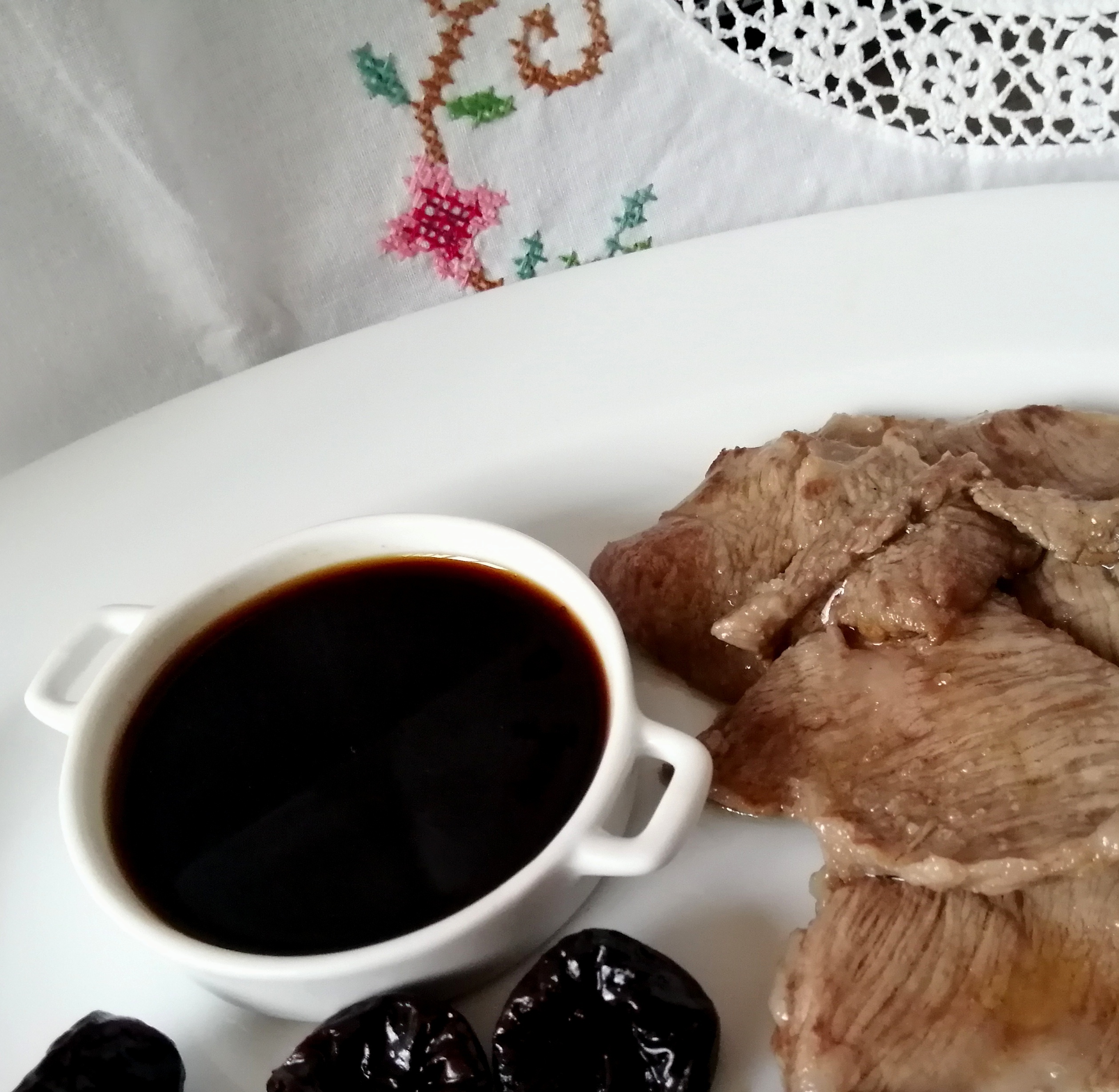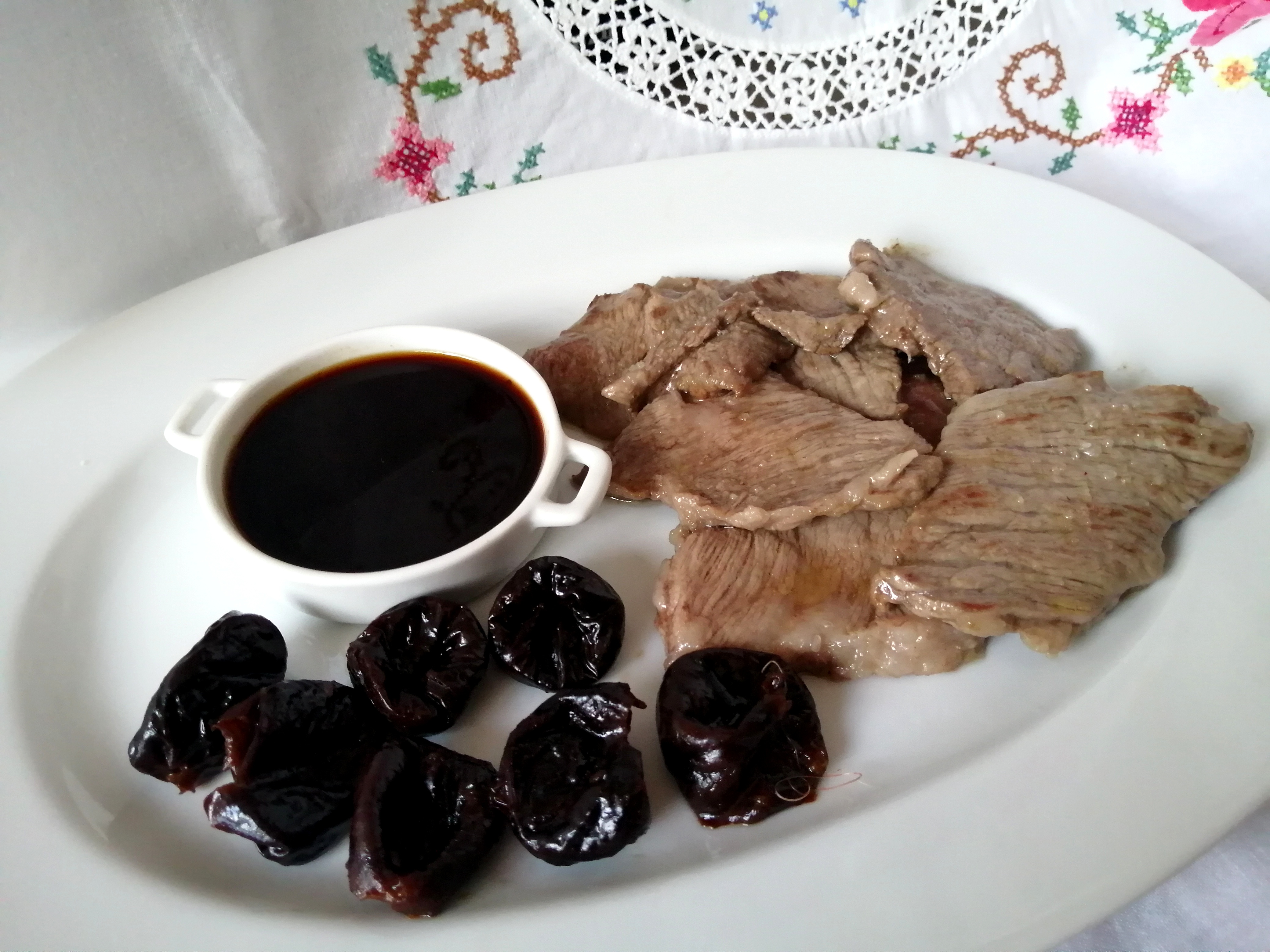 La mezcla de la salsa de soja con mermelada, y el sabor dulce que esta proporciona, es deliciosa para acompañar carnes, la he probado con una presa al horno y está exquisita. Pero se puede tomar con cualquier carne, preferentemente a la braza, asada, que no tenga salsa.