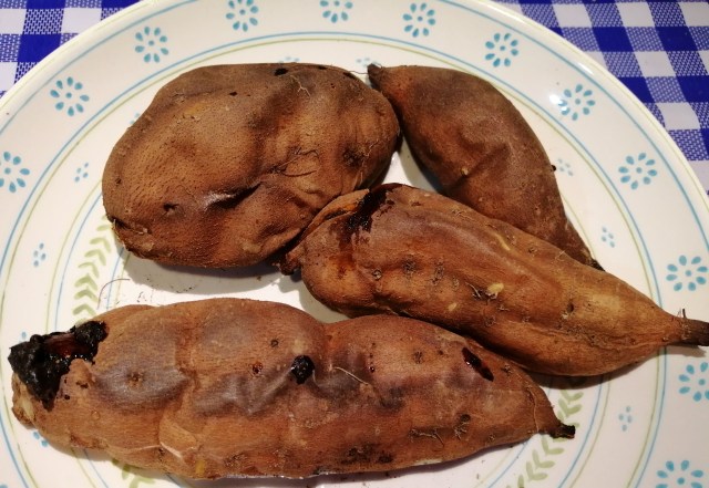 Calentamos el horno a 200º y metemos las batatas, las dejamos hasta que estén tiernas dándoles vueltas para que se hagan bien por todos lados.