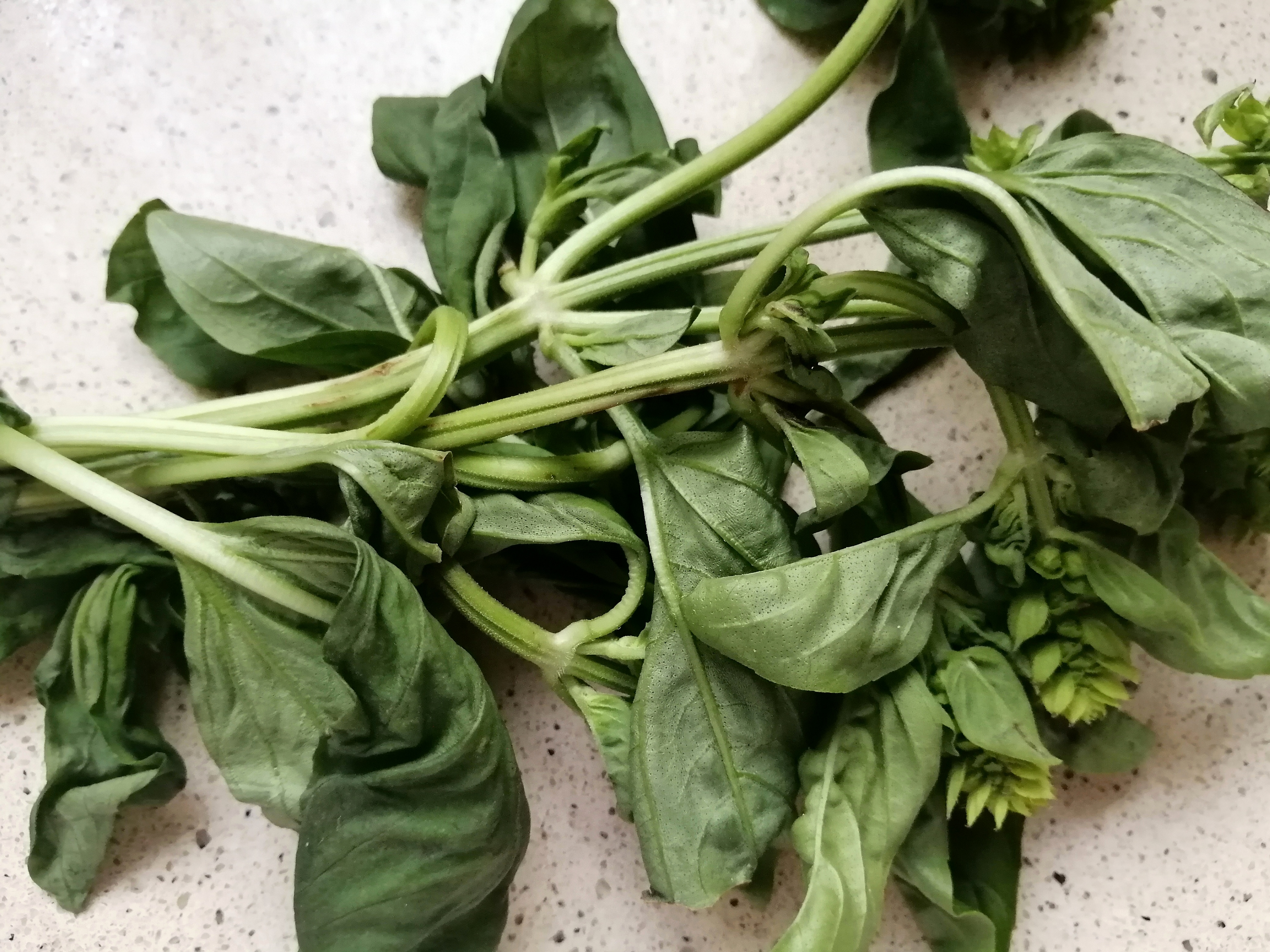 Me regalaron albahaca fresca, recién cogida del campo, y aproveché para infusionar aceite de oliva con ella, durante dos días. Metí en un tarro aceite de oliva virgen extra y bastantes hojas de albahaca, cerré bien y lo dejé dos días. Colé el aceite y el resultado fue un aceite con un aroma y sabor delicioso.
