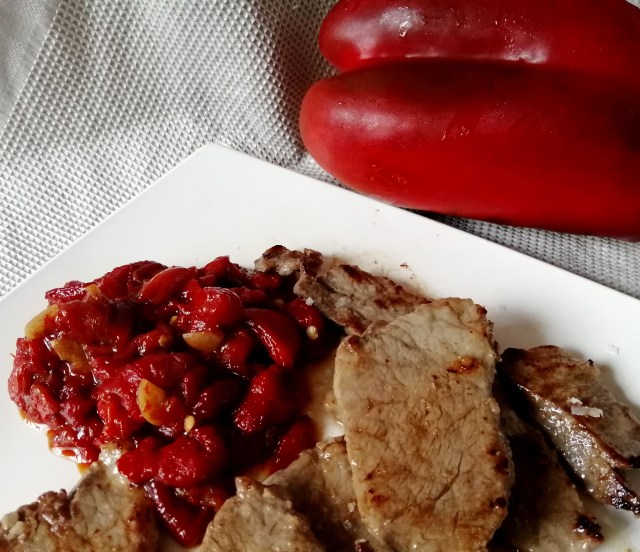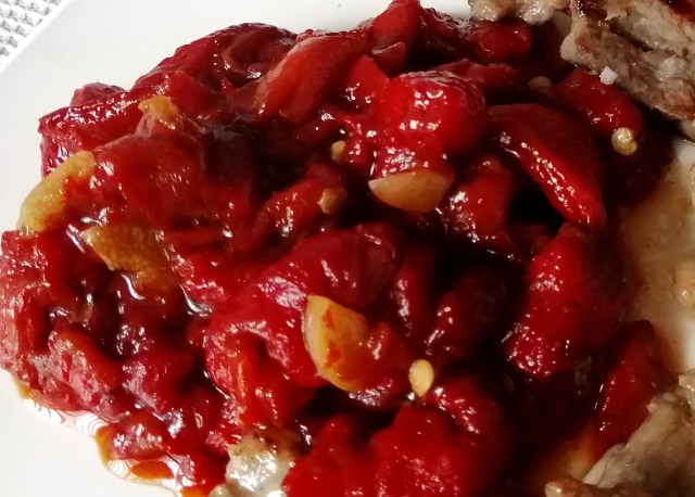 Estos pimientos rojos confitados son un excelente acompañamiento para carnes y pescados. Se hacen en poco tiempo y nos resuelven un problema cuando no queremos poner las patatas fritas de siempre, aunque éstas sean uno de los mejores acompañamientos que hay, si no el mejor…
