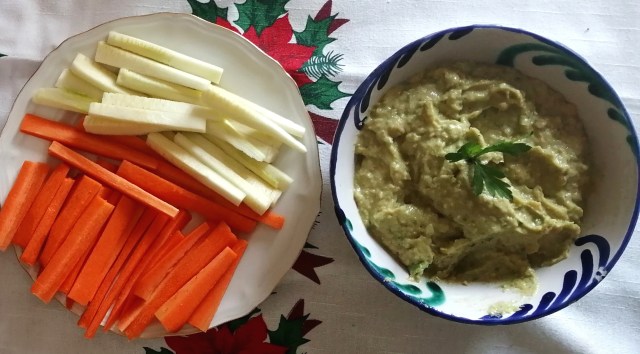 O con fritos, galletitas saladas, «doritos»…Está muy bueno y es un entrante estupendo y sano.