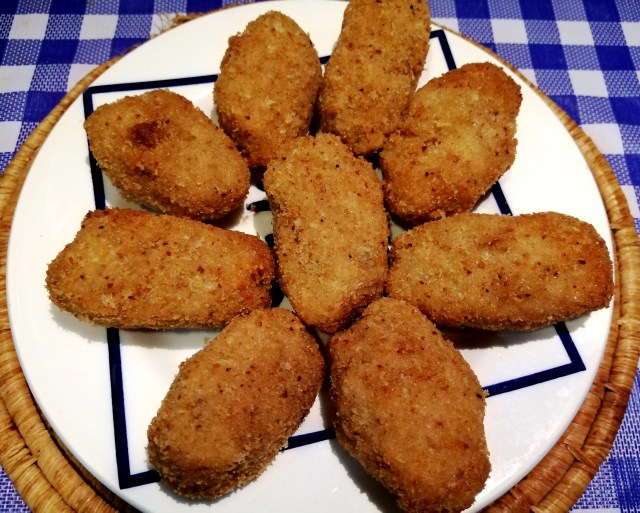 Las freímos en aceite bien caliente, hasta que queden doradas. Muy ricas, y así tenemos otra variedad de este rico plato tan nuestro como son las croquetas.