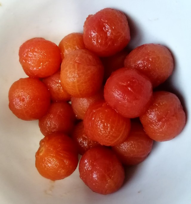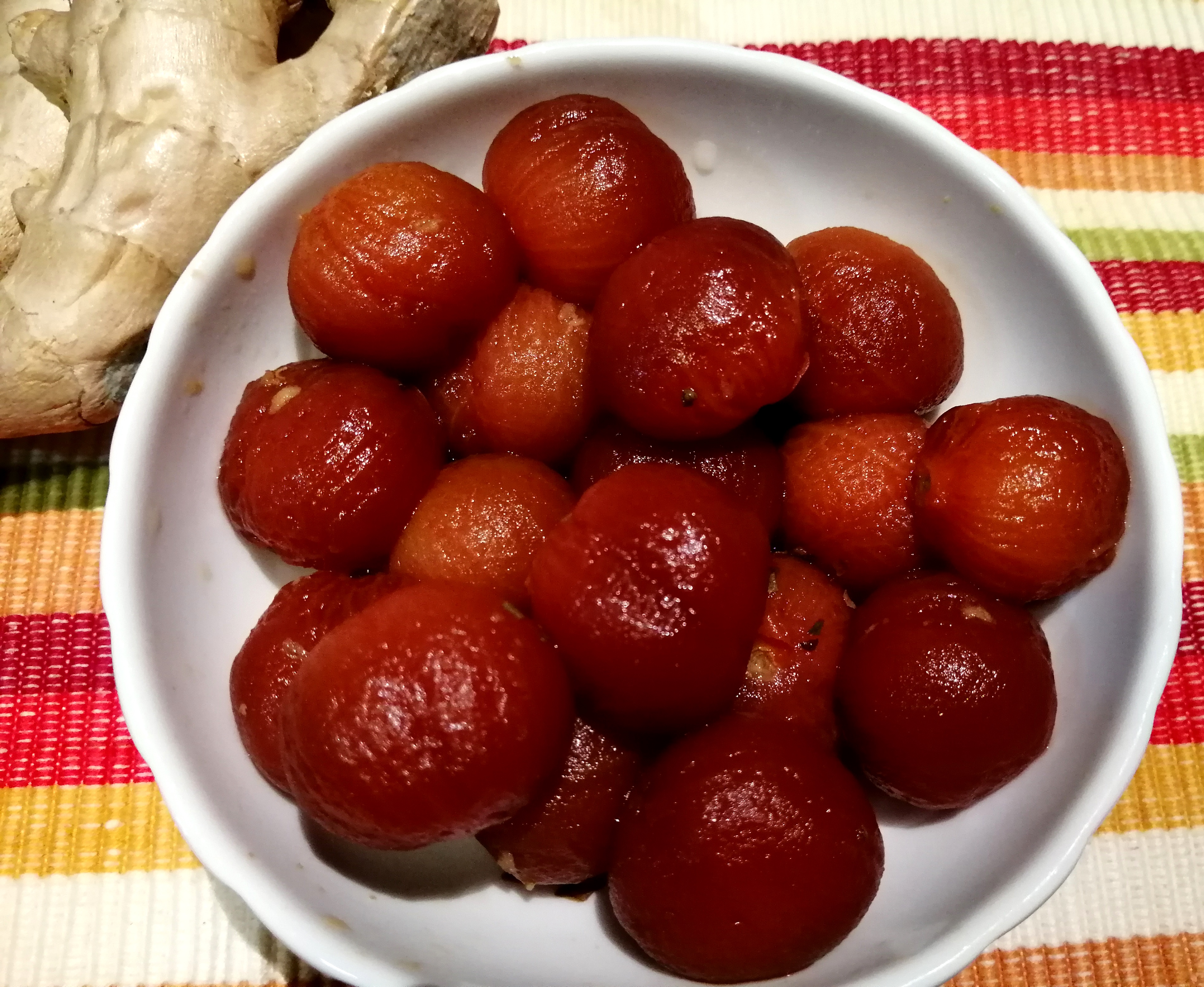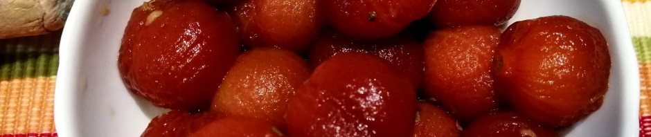 Estos tomatitos los tomé hace tiempo en el restaurante Tempus Fugit de Cádiz, donde Jesús Palma los ponía y, como estaban tan ricos, le pedí la receta. No se más que los ingredientes que me dijo, las cantidades las he puesto yo según mi criterio. Pero el resultado ha sido muy bueno, estos tomatitos están riquísimos.
