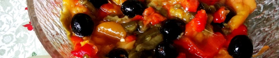 Los ponemos en un cuenco con aceitunas, echgamos sal, vinagre y aceite, por este orden, removemos bien para que se integre el aliño.