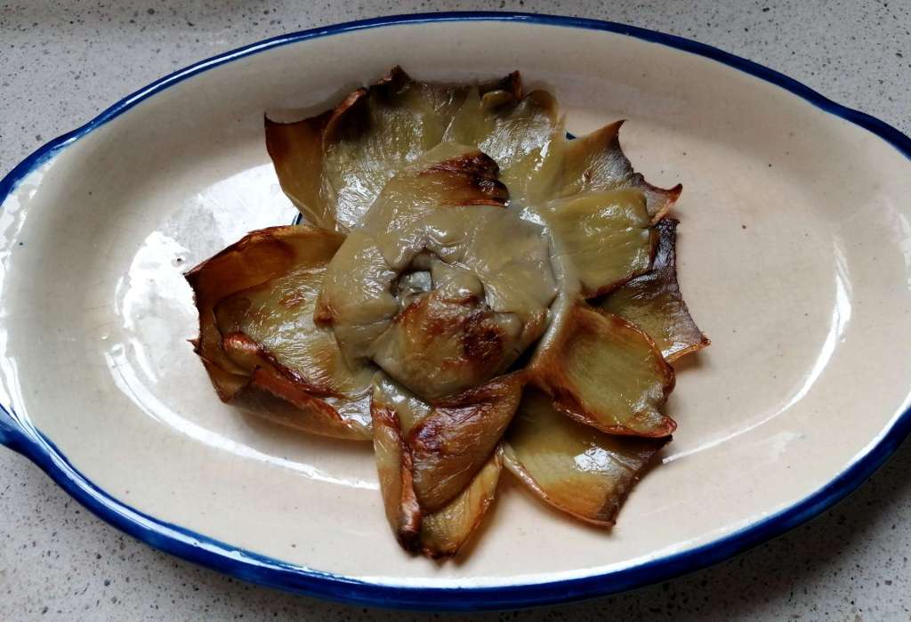 Los corazones de alcachofa confitados se pueden abrir con cuidado hasta formar una flor, añadimos unos trocitos de jamón ibérico y ya tenemos un plato exquisito.