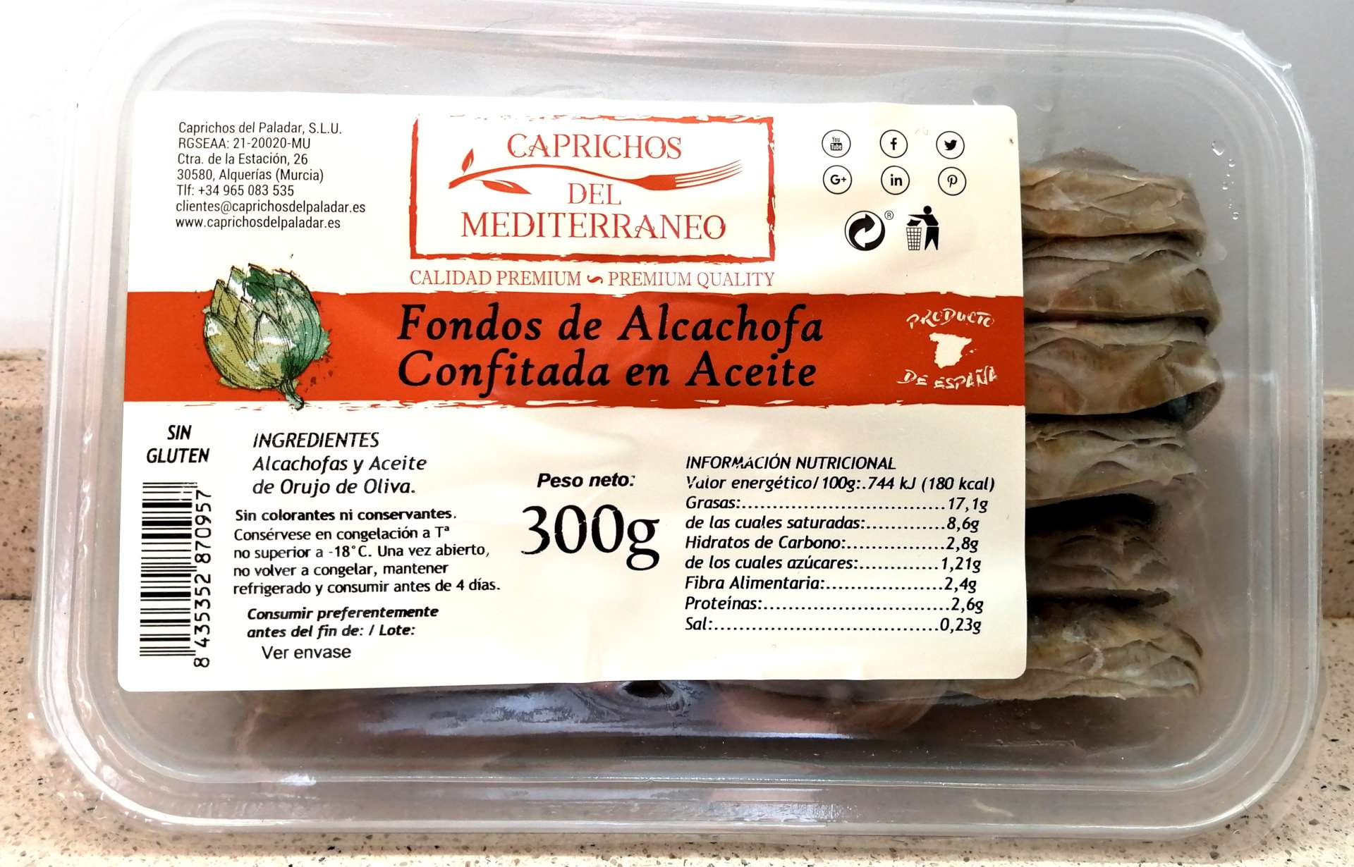 He conocido en Rota estas magníficas conservas Caprichos del paladar y Caprichos del Mediterráneo, a través de Jessica Montes. Hemos tenido la suerte de poder probar gracias a ella sus exquisitas alcachofas braseadas y confitadas, además de los pimientos rojos caramelizados. La pena es que ella solo distribuye a restaurantes y bares, no a particulares, pero tuvo la gentileza de darnos algunos de estos productos para que los probásemos.