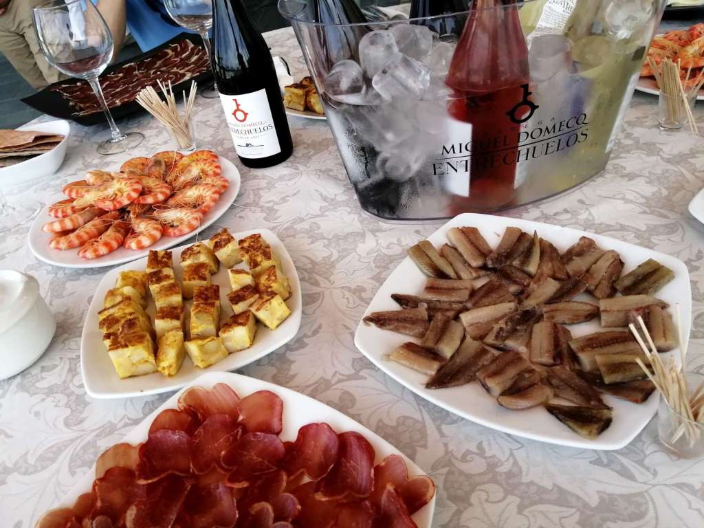 Pero no acabó ahí la visita, tuvieron la amabilidad de invitarnos a unos aperitivos, abundantes y ricos todos, que degustamos mientras nuestra vista disfrutaba con las vistas tan bonitas que desde la bodega se aprecian.