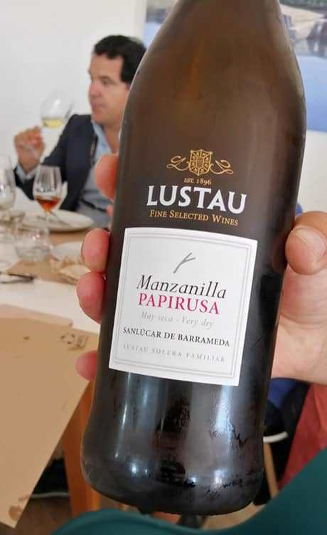 Posteriormente fuimos obsequiados con un almuerzo con productos típicos de la marisma salinera. Todos los platos fueron preparados por el equipo de cocina de Marambay y maridado con vinos generosos de las Bodegas Lustau, del Grupo Caballero, cuyo representante Juan Mateos nos fue describiendo cada vino que acompañaba a los distintos platos.