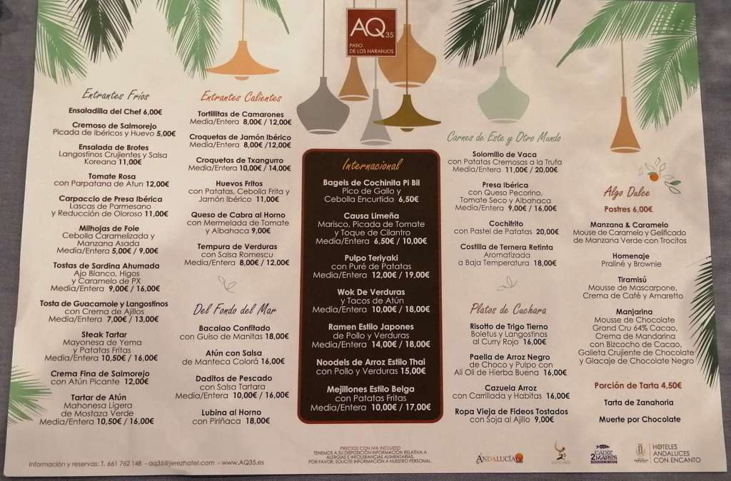 Nos gustó muchísimo el restaurante AQ35, el interior y el precioso patio en el que se tiene que estar divinamente, y nos parecieron excelentes todos los platos que pudimos probar, que no fueron todos los de la carta, por supuesto. Así que lo tengo apuntado para volver, porque merece la pena.