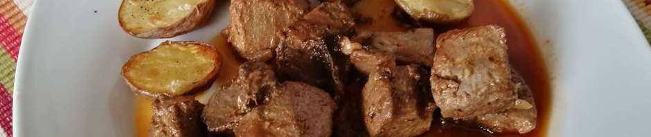 Echamos el tarantelo cortado en cuadrados o cubos, no muy grandes, salamos a gusto y añadimos el vino. Lo dejamos hacer hasta que esté tierno y la salsa quede espesa.