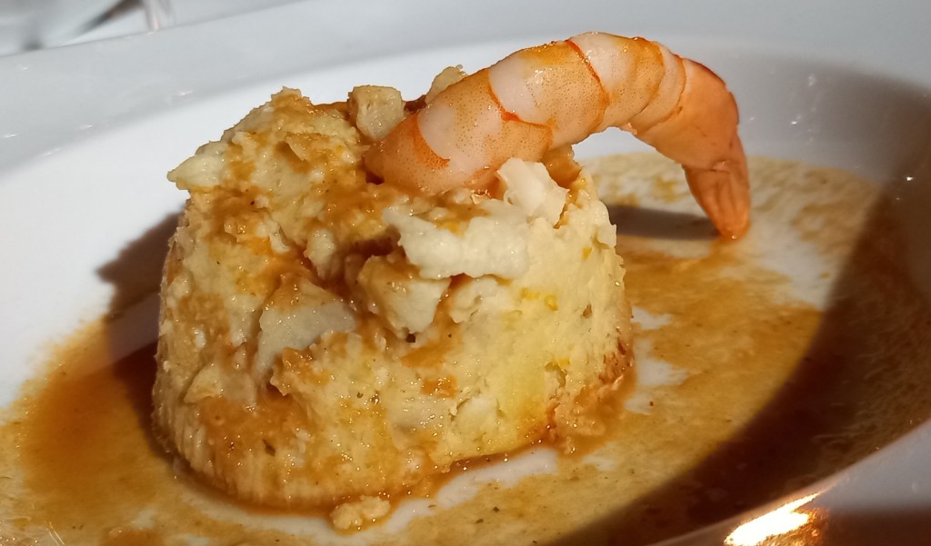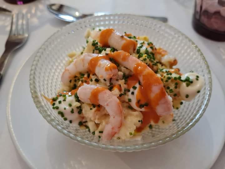 En este almuerzo probamos platos tan ricos como la ensaladilla de gambas blancas con el jugo de sus cabezas