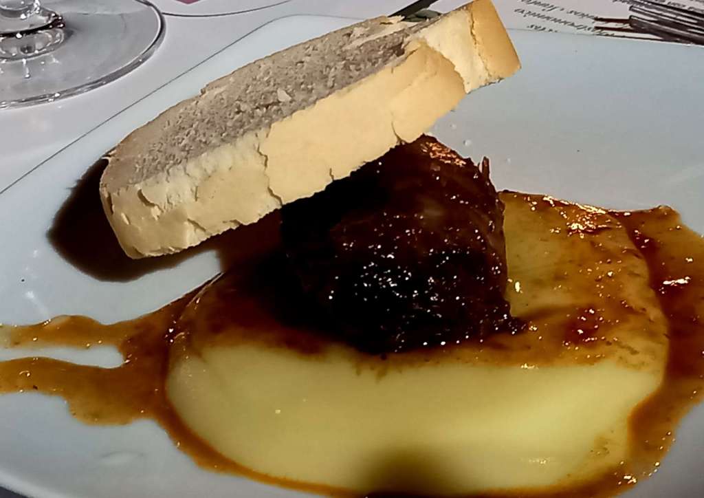 Carrillada con parmentier con alcachofa, con Forlong Ánfora.