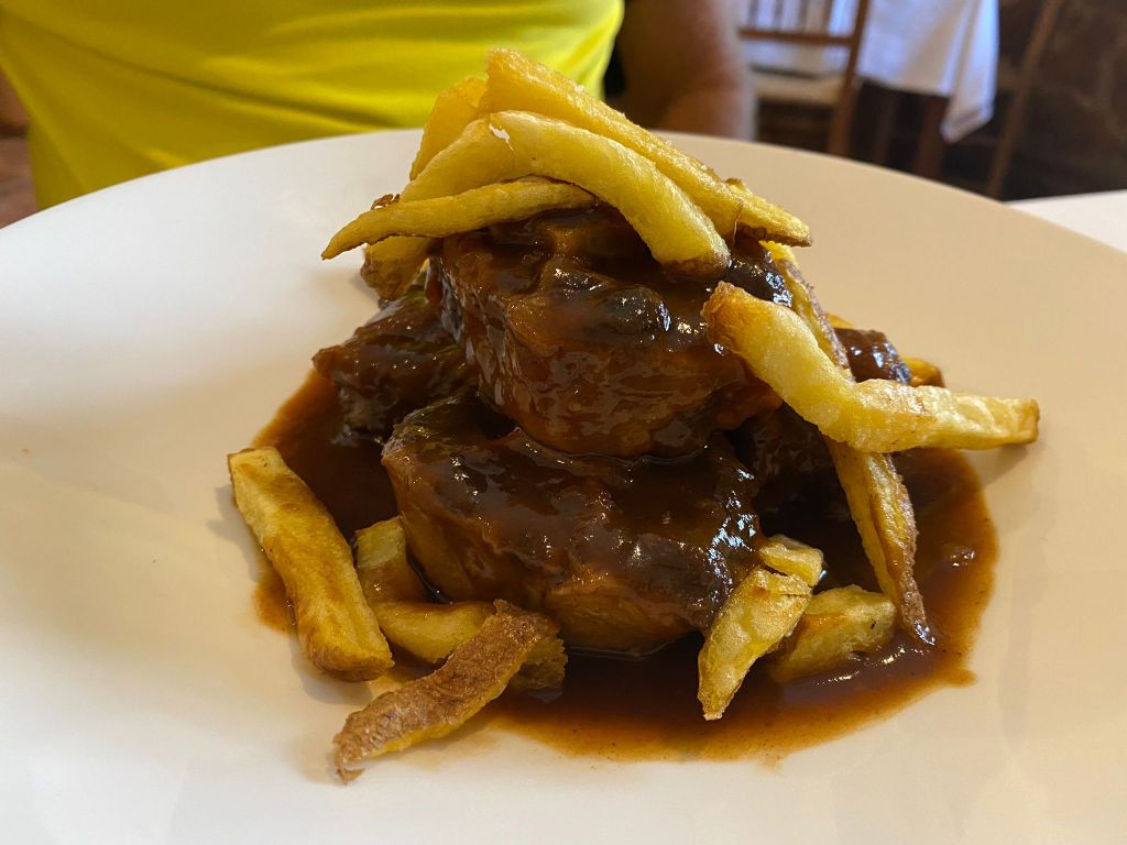 Y a ello hay que añadir que Juan Jesús es una persona encantadora, además de experto sumiller. Nos fue recomendando qué tomar, y con qué vino acompañarlo. Siempre acertando y provocando una gran de admiración por parte de cada uno de los que estábamos. Acabamos tomando cochinillo acompañado con unas patatas riquísimas, espectacular.