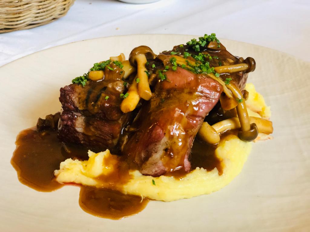 Solomillo ibérico a la brasa, parmentier y jugo de setas