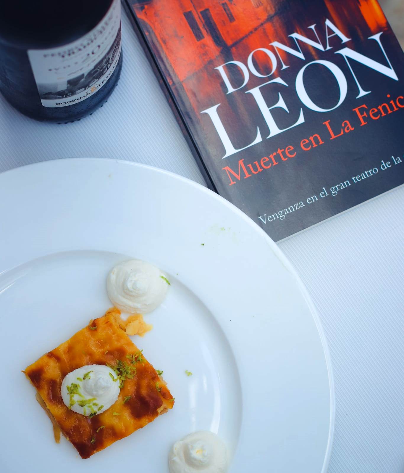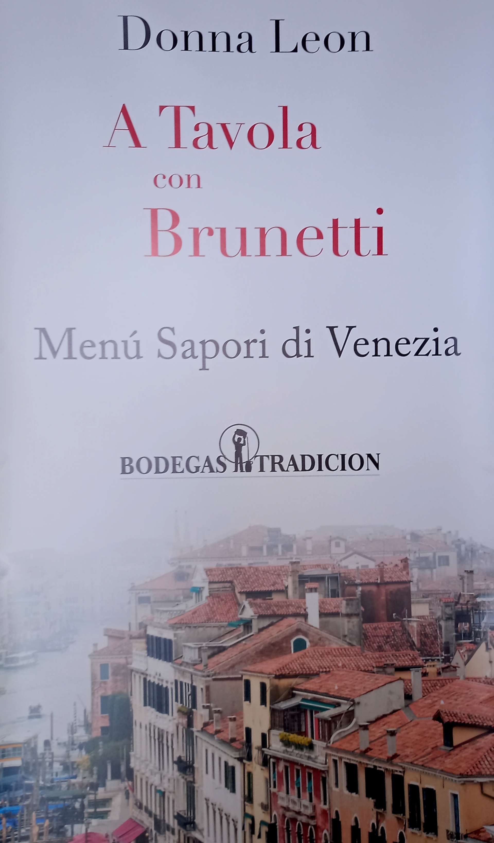 Este menú lo ha aportado la trattoria Pinsa Madre de Rota, y los platos están sacados de las novelas de Donna Leon cuyo protagonista es el comisario Brunetti y que se desarrollan en Venecia.