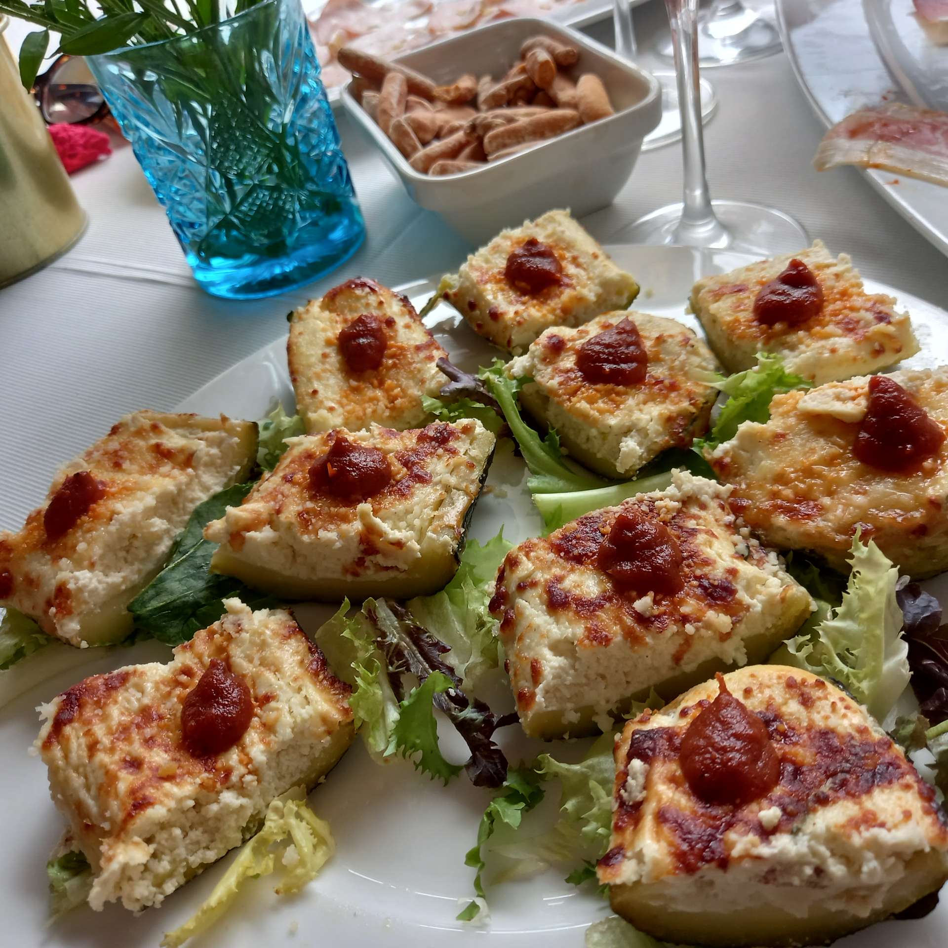 Y de postre Mele al forno con crema pasticcera e panna- Manzanas al horno con crema pastelera y nata.