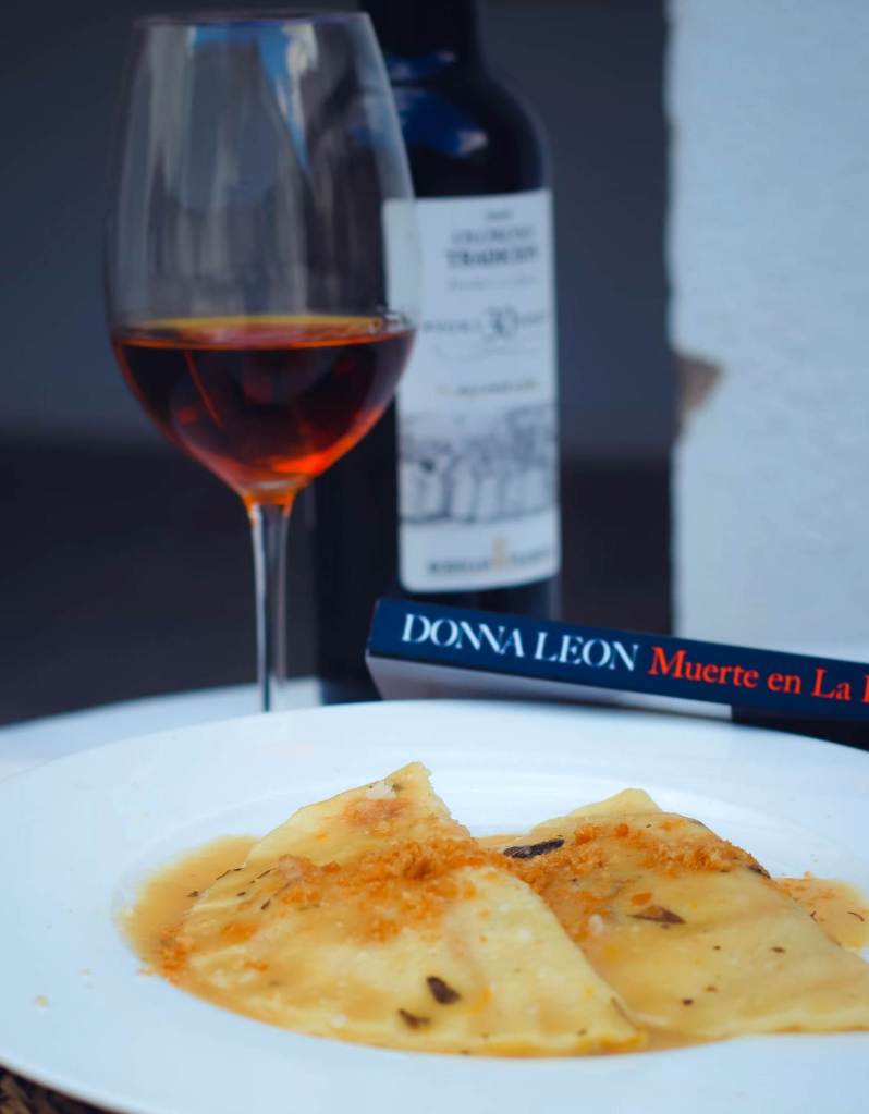 Como plato principal, los Ravioli di zucca con burro e salvia – Ravioli de calabaza roteña con