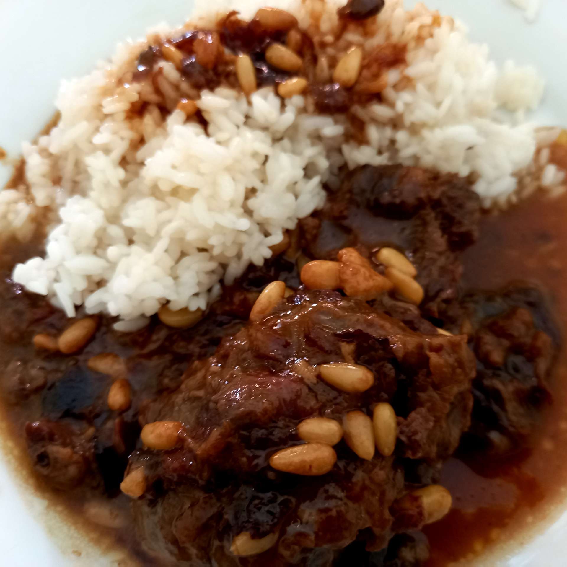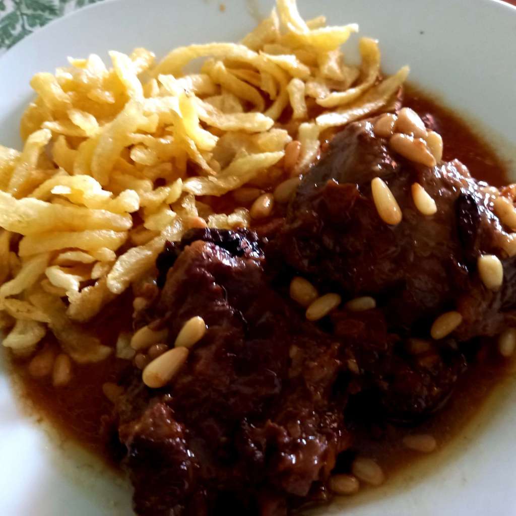 Echamos el vino y agua, que las cubra, dejándolas hacer hasta que estén tiernas. Si usamos una olla rápida tendremos que tenerlas menos tiempo. Cuando acaben de hacerse echamos los piñones y las ciruelas y las dejamos hervir uno o dos minutos.