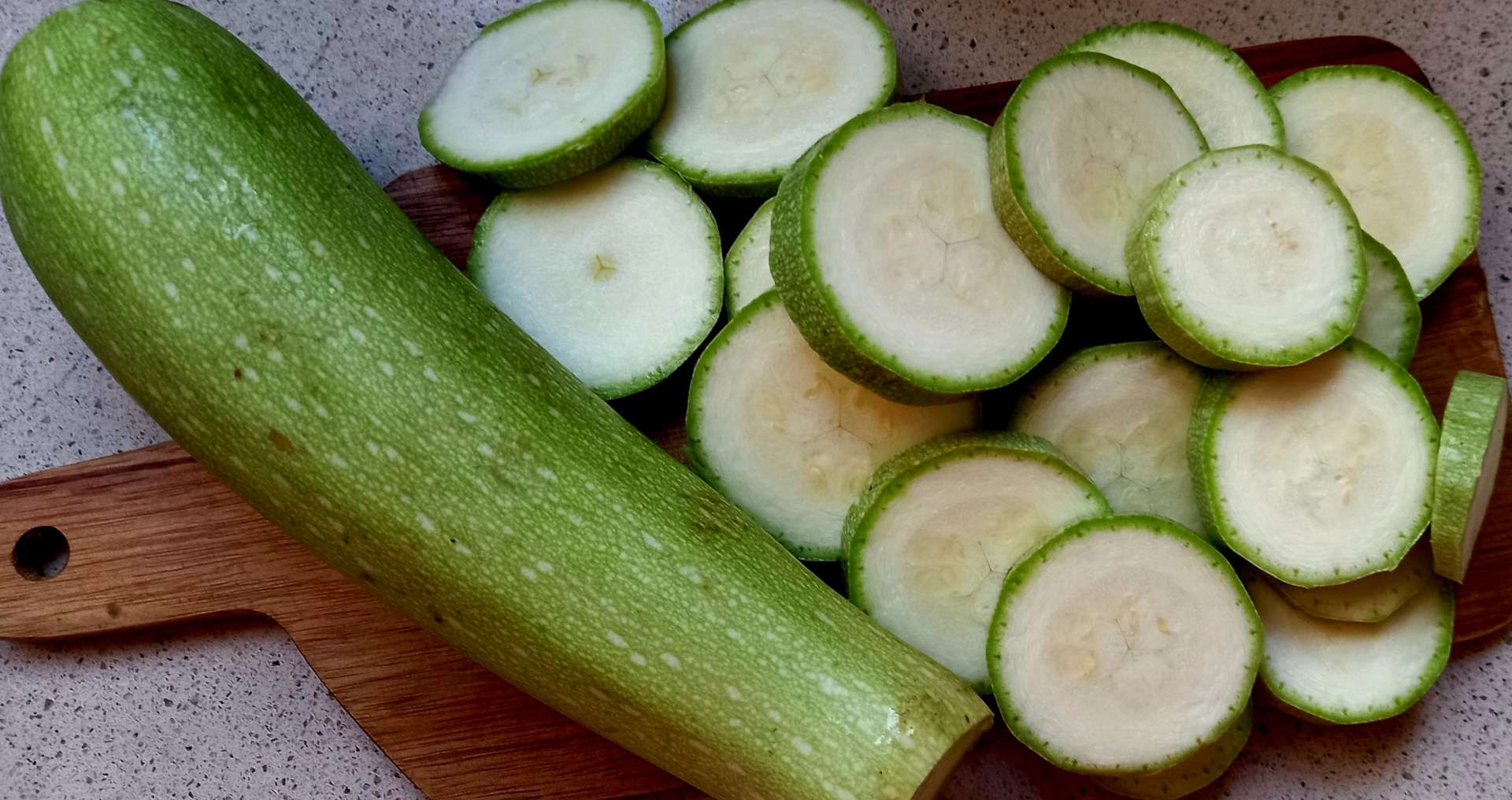 Lavamos los calabacines y los cortamos en rodajas con la piel.