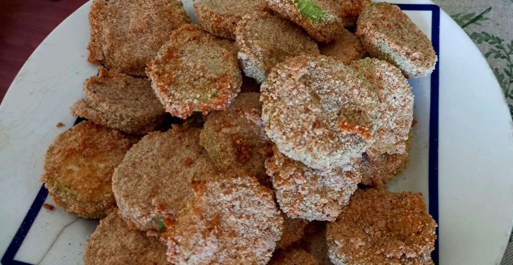 Echamos sal y un poco de pimienta molida en las rodajas y las empanamos con pan rallado y huevo batido.