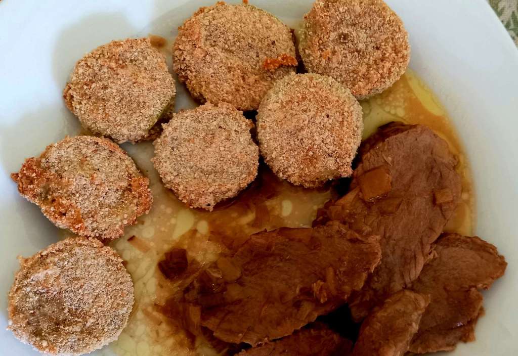 Muchas veces pensamos en cómo acompañar una carne, por ejemplo, y se nos vienen a la cabeza las patatas, fritas, al horno…O un pisto o verduras a la plancha. Pues aquí tenemos otra opción de acompañante, rodajas de calabacín muy fáciles de hacer y riquísimas.