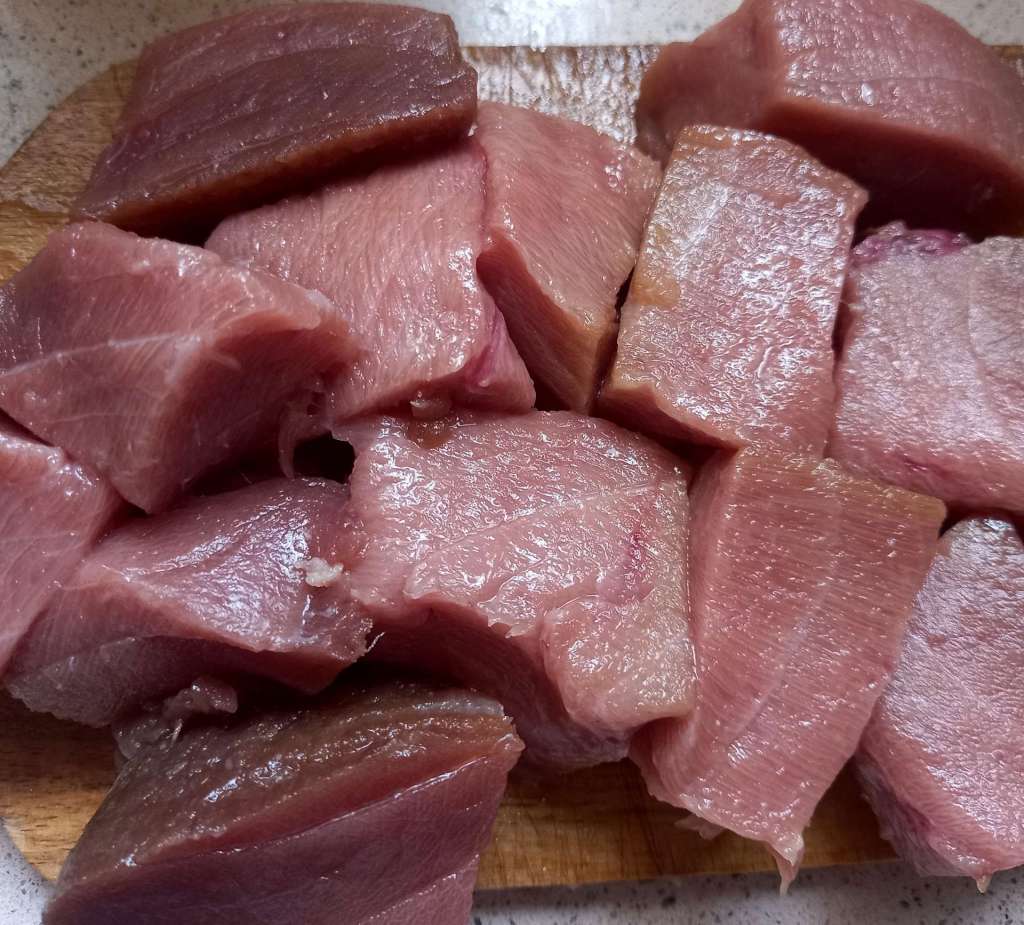 Cortamos el atún en dados, más o menos grandes según nos guste.