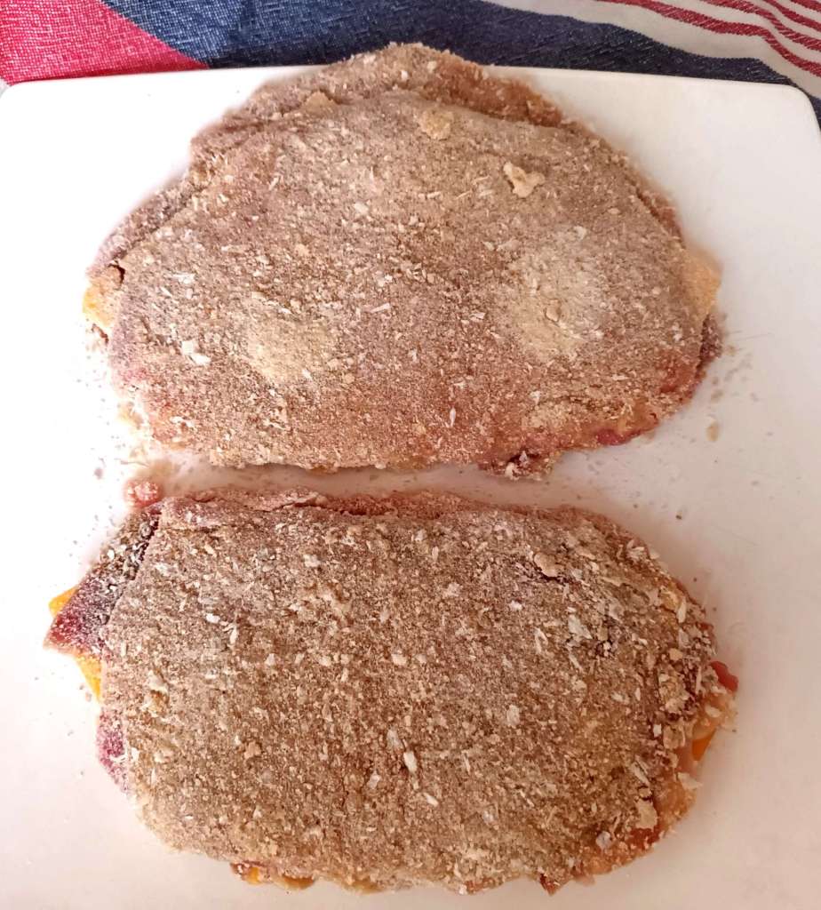 Los pasamos por harina, luego por huevo batido y, finalmente. por pan rallado.