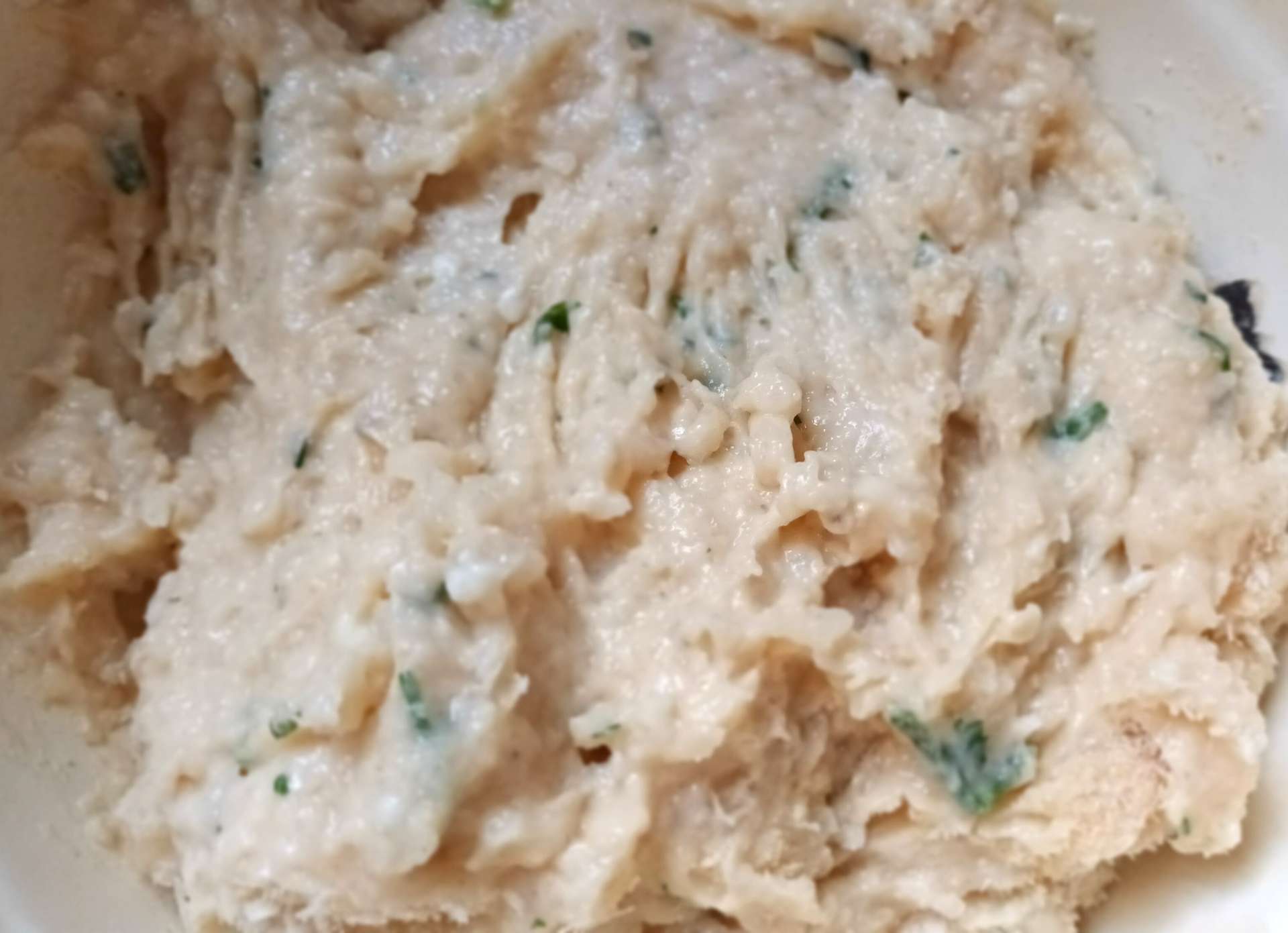 Si vemos que la masa está poco consistente añadimos más pan rallado, debe quedar apta para hacer bolitas y que no se deshagan. Hacemos las bolitas, las pasamos por harina y las freímos.