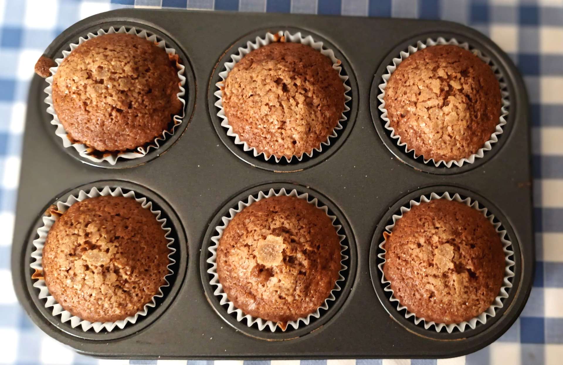 Mezclamos las harinas con la calabaza hasta que quede muy bien mezclado y con ello rellenamos moldes de magdalenas. Echamos por encima un poco de canela y azúcar y las metemos en el horno, que estará caliente a 200º. Las dejamos hornear 25 minutos.