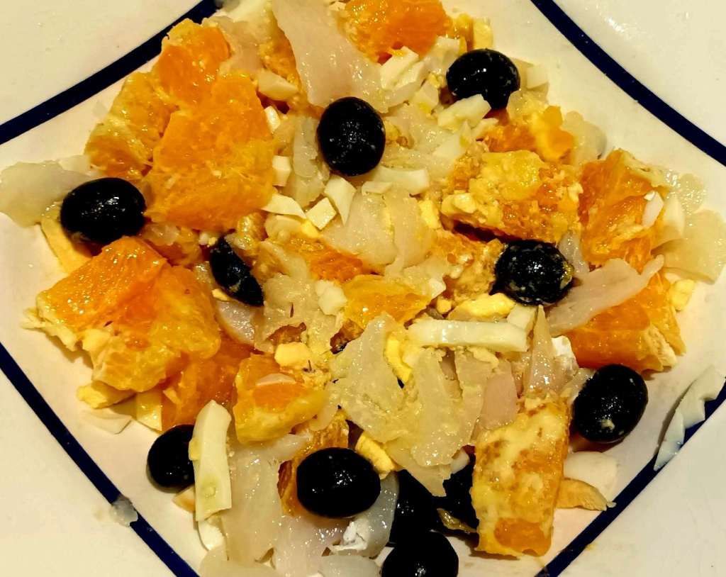 Esta rica ensalada tiene su origen en la Edad Media y en la cultura mozárabe. El bacalao era un alimento abundante y económico, por lo que podía ser consumido por toda la población, hasta la más humilde. Y los demás ingredientes también eran baratos y se podían adquirir con facilidad. Juntos dieron como fruto esta rica y fresca ensalada, muy apropiada para estos días de calor.