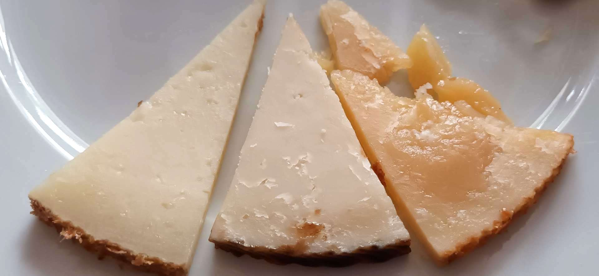 Tres tipos de quesos El Bosqueño, emborrado de oveja, emborrado de oveja con tres años de curación y curado con amontillado, recientemente premiado en el Worl Chees Award 2022.