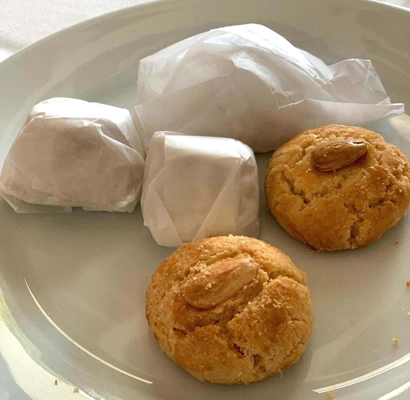 De postre pastas de almendras y hojaldrinas del Convento Madre de Dios de Sanlúcar de Barrameda, que trajo Beatriz Bartel, agente de turismo de esta localidad.